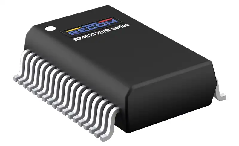 RECOM’s RH, RV, RP, RGZ, RKZ, RxxPxx, RxxP2xx, RA3, R24C2T25 and R24C2T25/R DC/DC converters are designed for IGBT driver circuits, delivering asymmetric outputs of +15V/-9V. This eliminates the need for two separate converters, simplifying designs and saving board space. The SMD-mount RA3 series provides three voltage options with higher output current for faster switching, while the compact R24C2T25/R series in a 36-pin SSOP SMD package offers programmable dual regulated outputs, wide input ranges, reinforced 5kVAC isolation, and integrated protection features—ensuring precise gate drive voltages and reliable operation in IGBT applications.