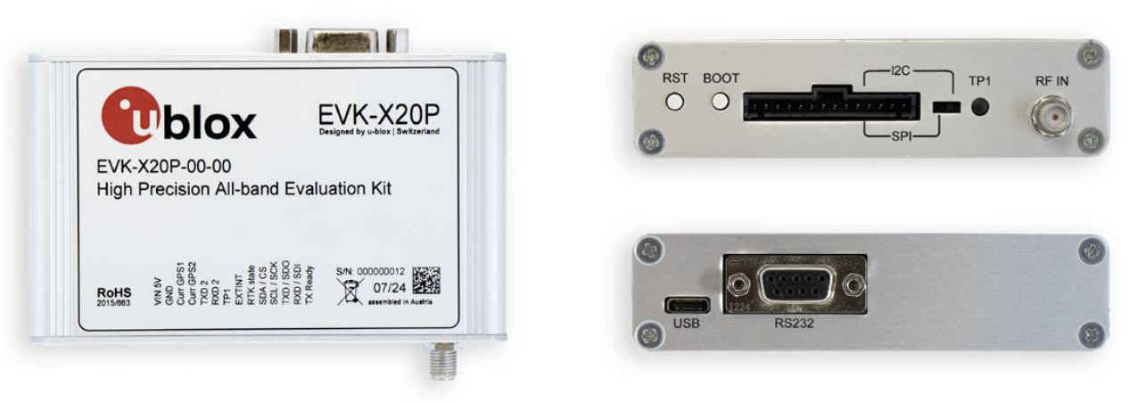 The EVK-X20P evaluation kit allows efficient evaluation of ZED-X20P, the u-blox all-band high precision positioning module. The ZED-X20P module provides all-band GNSS positioning and comes with built-in RTK technology providing centimeter-level accuracy to users. Augmentation services may be formatted as SPARTN 2.0 or RTCM 3.4.